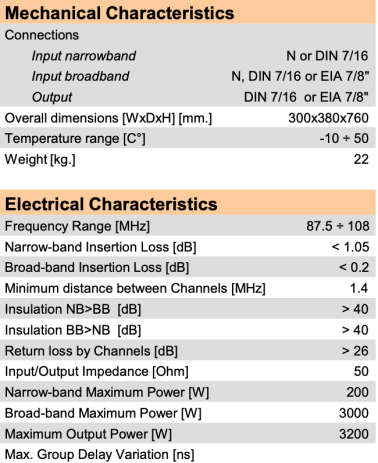 Multiplexeur FM à double pont double cavités 1 x 200W + 1 x3000W